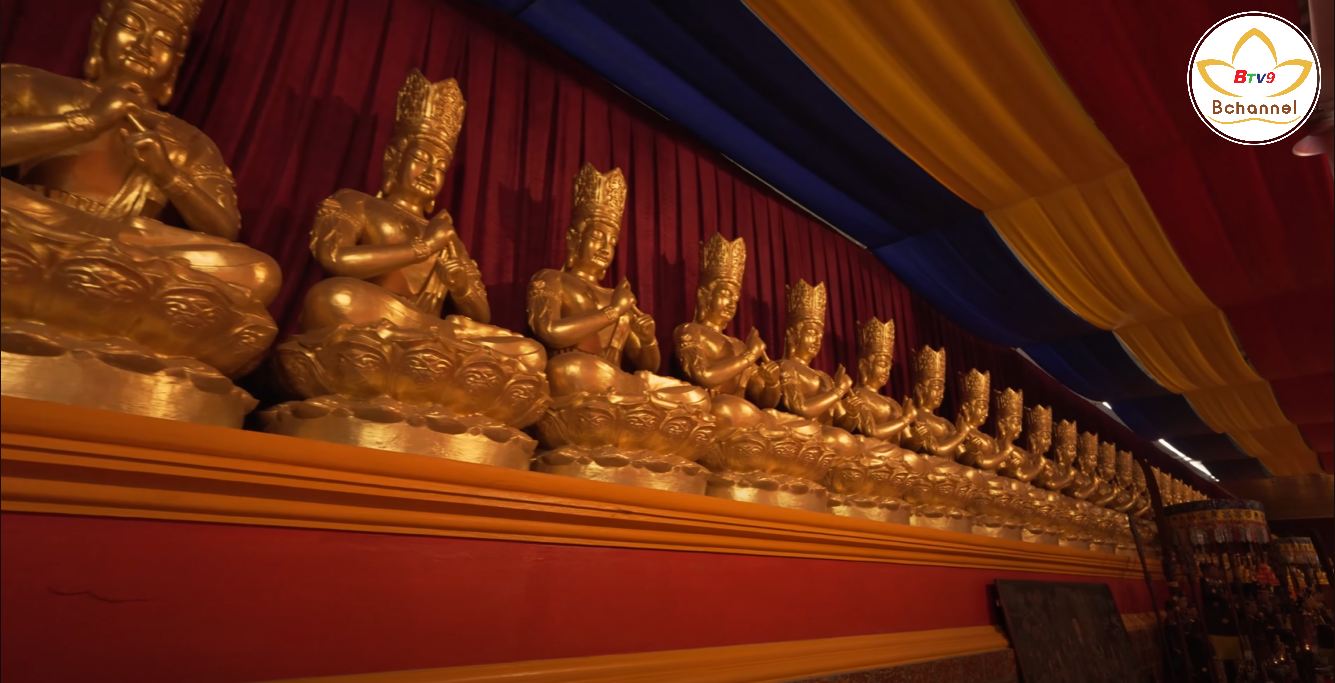 Bao quanh Tam Bảo là 100 tượng Phật nhỏ sơn vàng lấp lánh, tượng trưng cho ánh sáng trí tuệ vô biên của Đức Phật Thích Ca Mâu Ni. Đây là điểm nhấn độc đáo hiếm thấy ở các ngôi chùa khác trong khu vực.