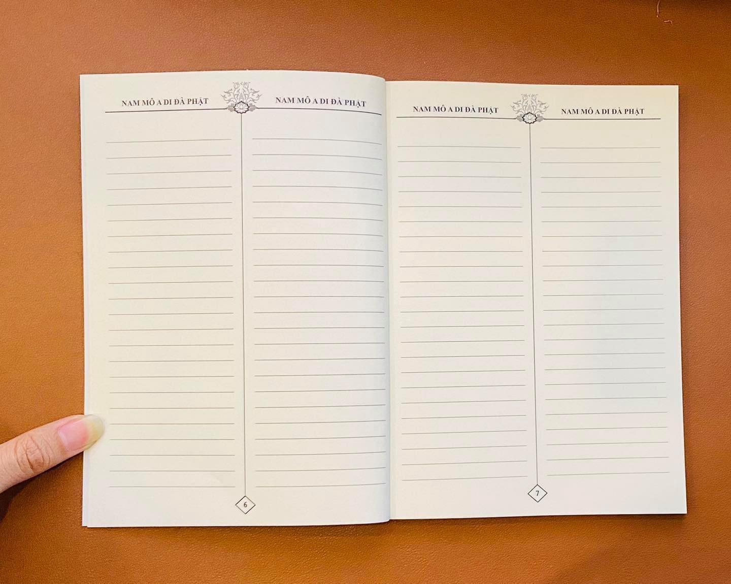 Sổ chép Kinh A Di Đà là sổ chép kinh đã được in sẵn với những nét mờ để người sử dụng dễ dàng chép kinh và thuận lợi. Đặc biệt, nét chữ cũng rõ ràng và sạch đẹp hơn.
