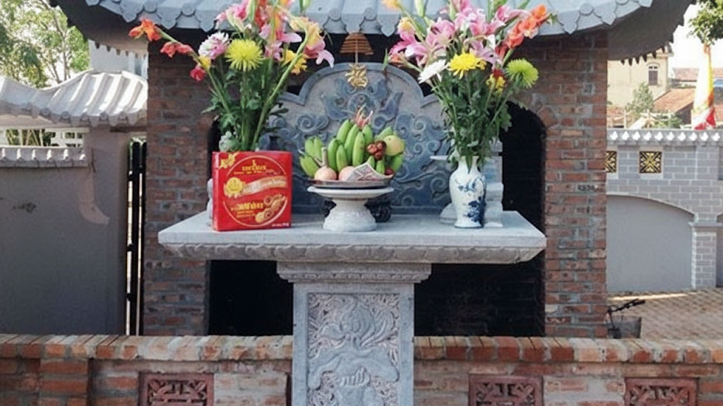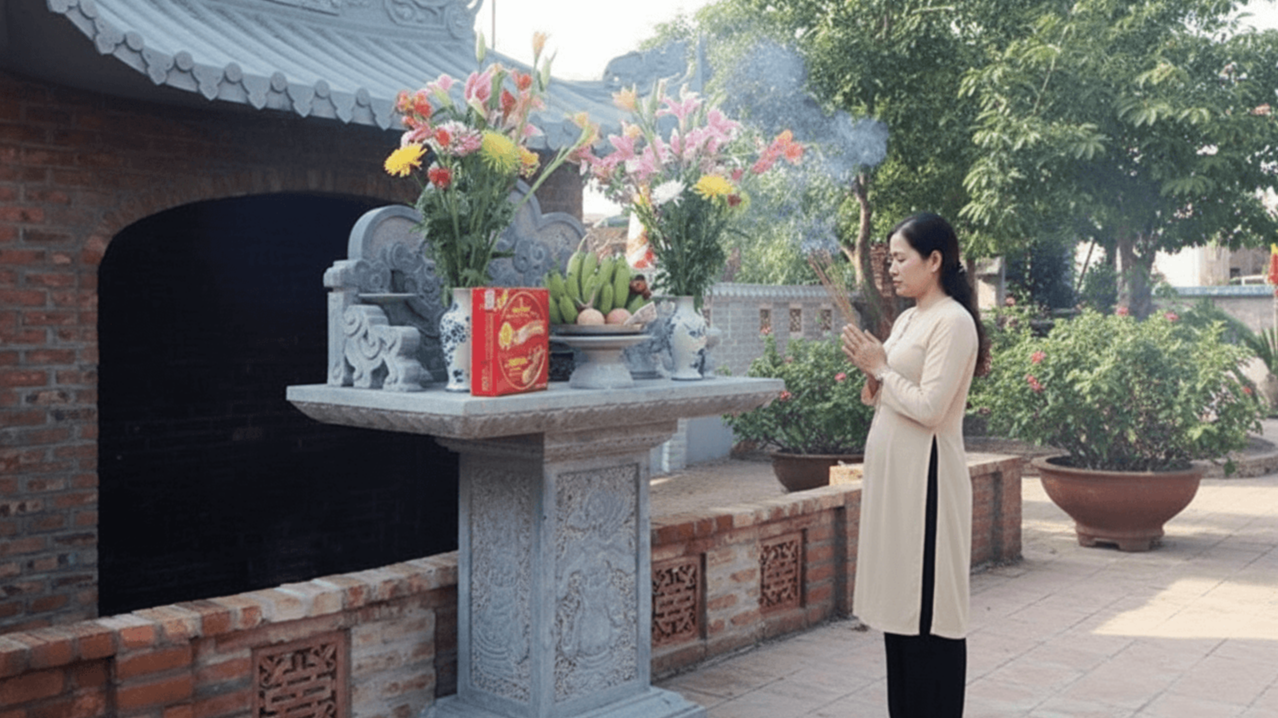 - Dọn dẹp sạch sẽ bàn thờ ngoài trời: Quét dọn khu vực xung quanh, lau sạch bụi trên cây hương, thay nước mới trong bình hoa.